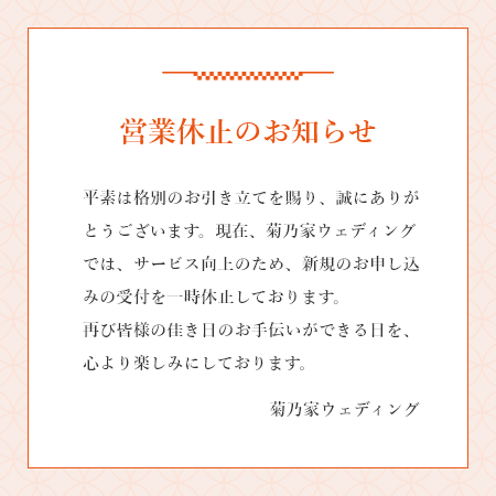 菊乃家で叶えた、お二人らしい挙式、披露宴の様子を ご紹介いたします。